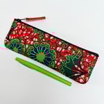 Zip pouch made from an Ankara fabric, not the usual cotton more like a deck chair material. Lined in cream cotton with black zip and orange leather pull.